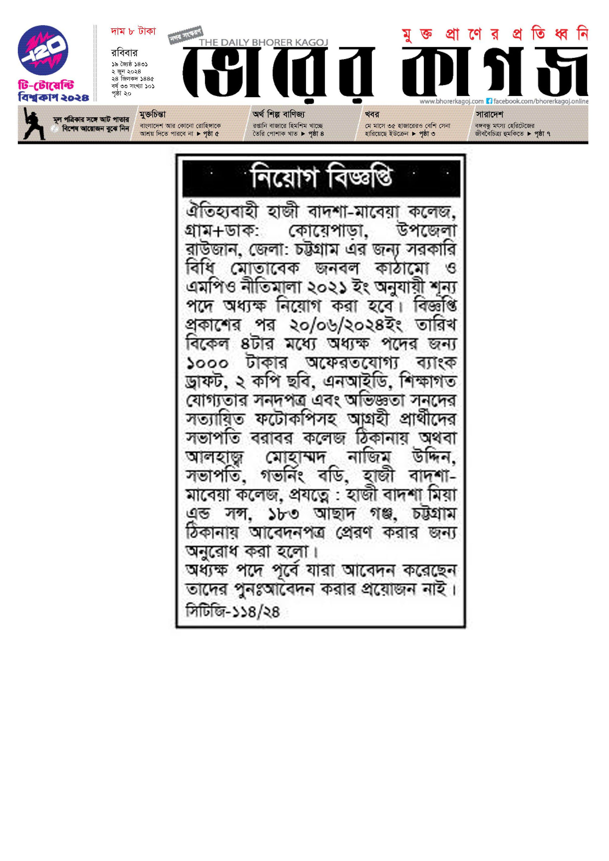 অধ্যক্ষ নিয়োগ বিজ্ঞপ্তি